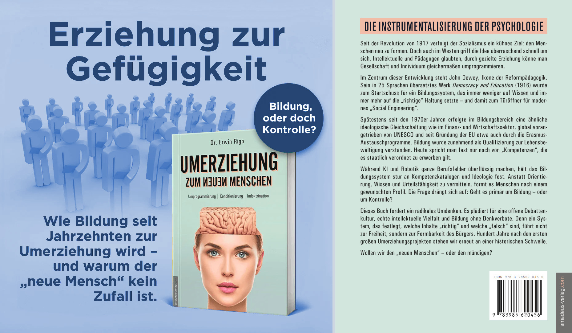 Das Buch „Umerziehung zum neuen Menschen“ ist seit Mitte Dezember 2025 verfügbar: Taschenbuch (Softcover) ISBN 978-3-98562-045-6 zum Preis von 19 EUR (DE) bzw. 19,60 EUR (AT) bzw. 21 CHF über den Buchhandel