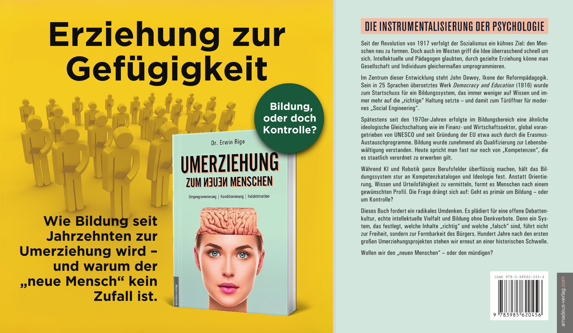 Das Buch „Umerziehung zum neuen Menschen“ ist seit Mitte Dezember 2025 verfügbar: Taschenbuch (Softcover) ISBN 978-3-98562-045-6 zum Preis von 19 EUR (DE) bzw. 19,60 EUR (AT) bzw. 21 CHF über den Buchhandel