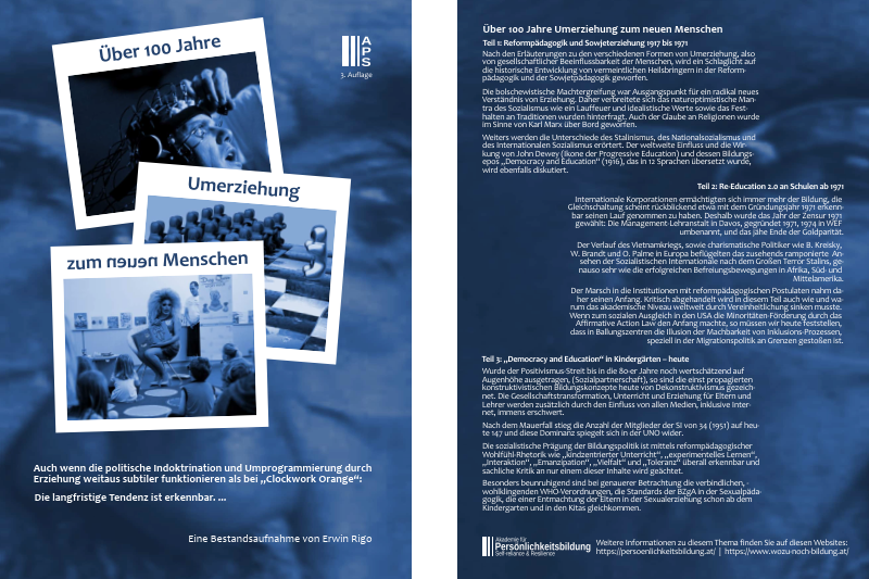 Die aktuelle Auflage der Broschüre „Über 100 Jahre Umerziehung zum neuen Menschen“ ist seit März 2025 auch gedruckt verfügbar: Broschüre (Softcover) zum Preis von 9,50 EUR (DE) bzw. 9,80 EUR (AT) bzw. 10,50 CHF auf Anfrage.