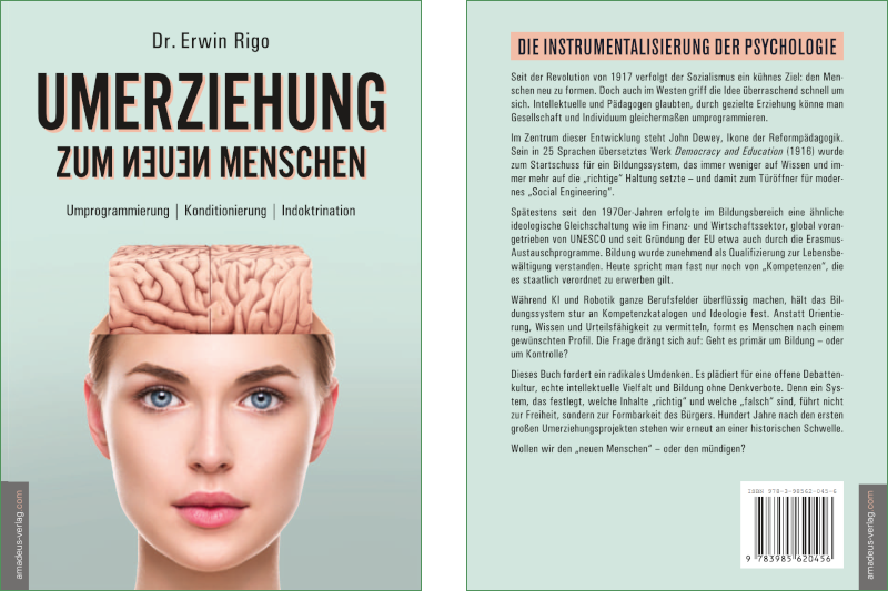 Das Buch „Umerziehung zum neuen Menschen“ ist seit Mitte Dezember 2025 verfügbar: Taschenbuch (Softcover) ISBN 978-3-98562-045-6 zum Preis von 19 EUR (DE) bzw. 19,60 EUR (AT) bzw. 21 CHF über den Buchhandel